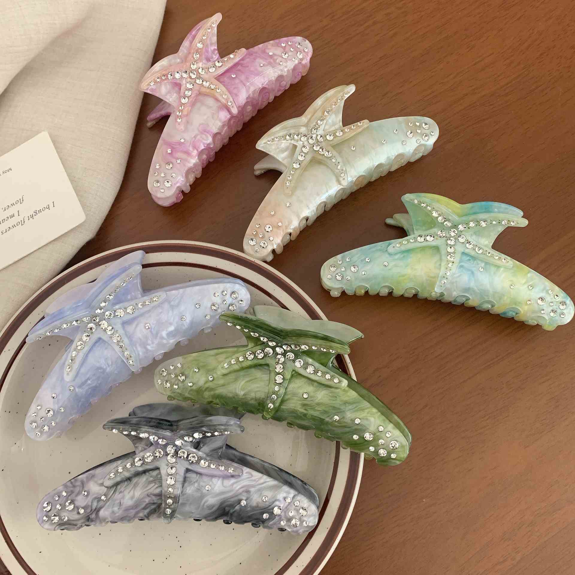 Factory Tukku Muoti Asetaatti Star Hair Claw 11,5 CM Kesä Meritähti Hiusklipsi naisille Tytöille Paksut hiukset